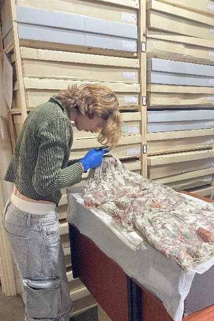 There are examples of European fashion, lace, shoes and accessories with the main spectrum ranging from the 18th to 21st centuries that have been lovingly collected over many years and from all over the globe. The provenance of the collection is far reaching, coming from diverse geographical locations such as Central Asia, South America, the Middle East, Europe and the South Pacific. The Archive is currently being updated onto a database.