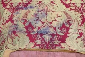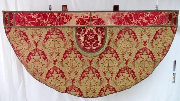 In total 360 hours was spent on the deconstruction, cleaning, supporting, relining, reconstruction and the remaking of the cream cope and the purple pall.